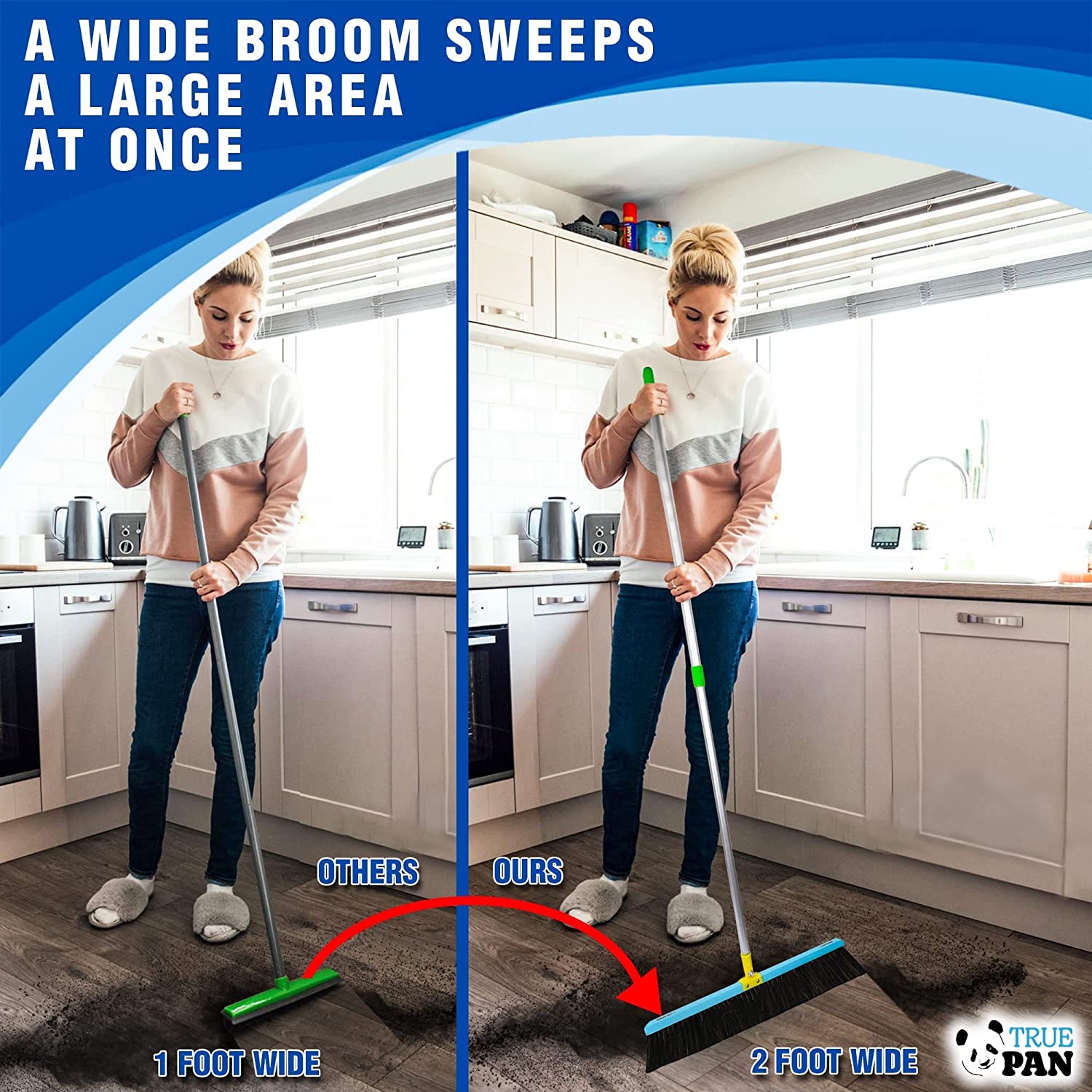 TWO FEET WIDE BROOMHEAD: Sweep up in one motion twice the area that other brooms allow. Cleaning will go much faster! Satisfaction Guaranteed. Designed in the USA. Patent Pending.
